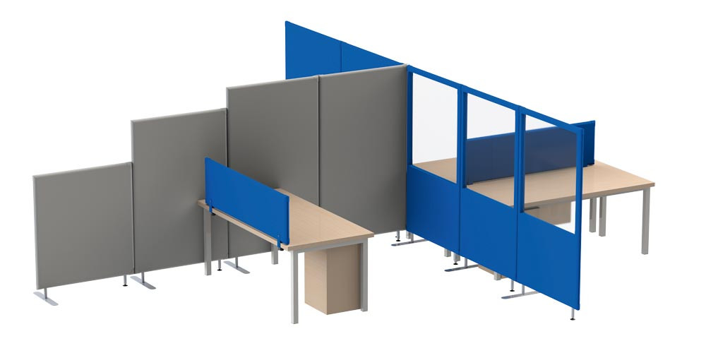 ∙ Geräuschdämpfende, flexible Akustikwände ∙ Verkettbar und in jedem Winkel aufstellbar ∙ Einfacher Aufbau durch Verbindungsklammern zum Einstecken