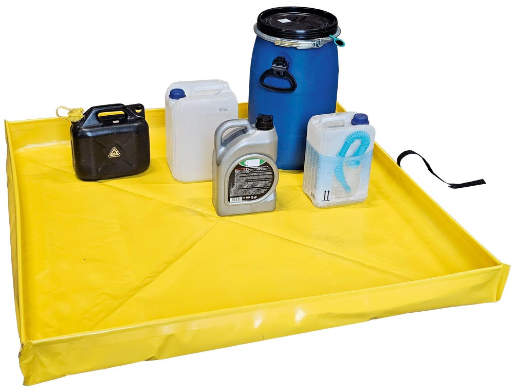 ∙ Schnell, flexibel und einfach einzusetzen ∙ Zusammenrollbar, mit Klettverschluß zur Befestigung ∙ Glasfaserverstärkt für hohe Stabilität ∙ Für den Einsatz im Innen- und Außenbereich geeignet ∙ Ideal für Wartungsarbeiten, z.B. für das Reinigen von öligen Werzeugen und Maschinenteilen · Ideal zur Lagerung von Kleingebinden