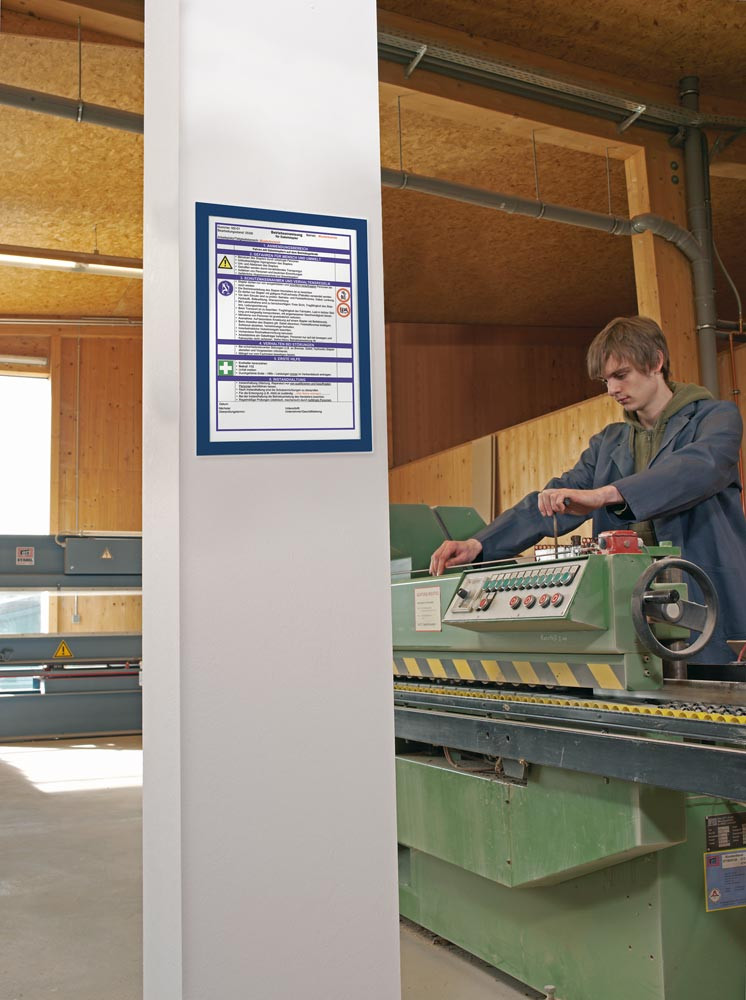 Farbiger Rahmen ideal zur Aufnahme von Betriebsanweisungen in Lager und Betrieb