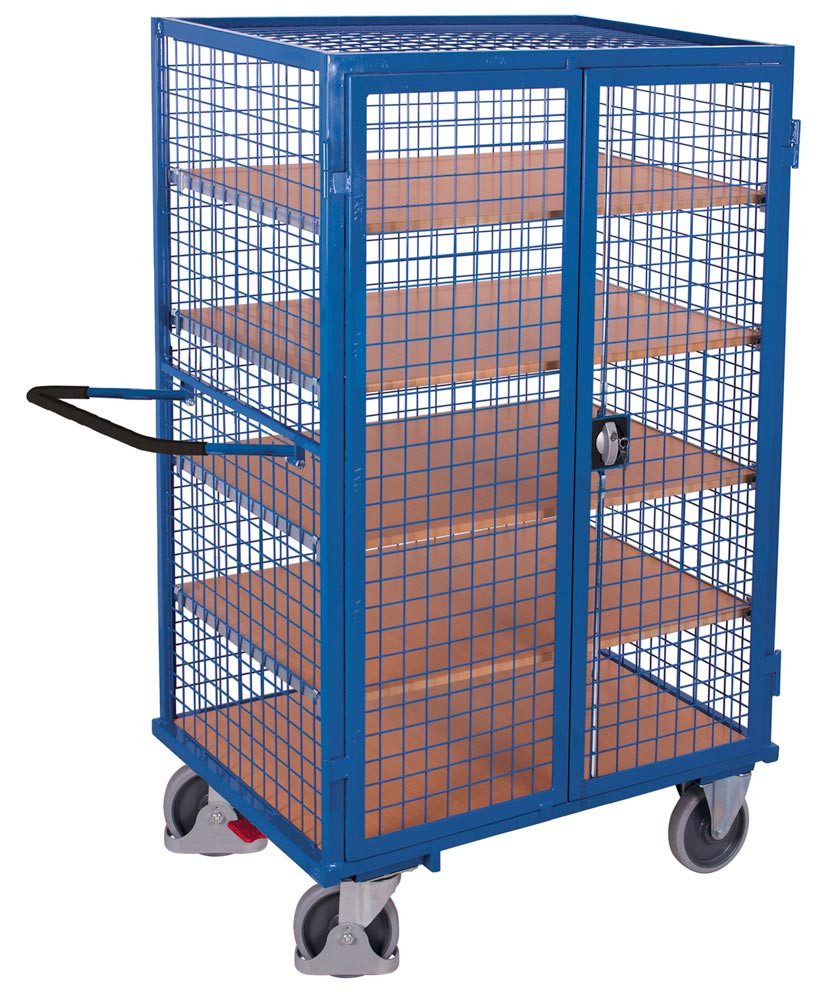 Kastenwagen, Gitterwände, 1 Doppelflügeltür, 5 Ladeflächen LxB 1045x685 mm, Außenmaße LxBxH 1115x730x1810 mm, Traglast 500 kg, RAL 5010