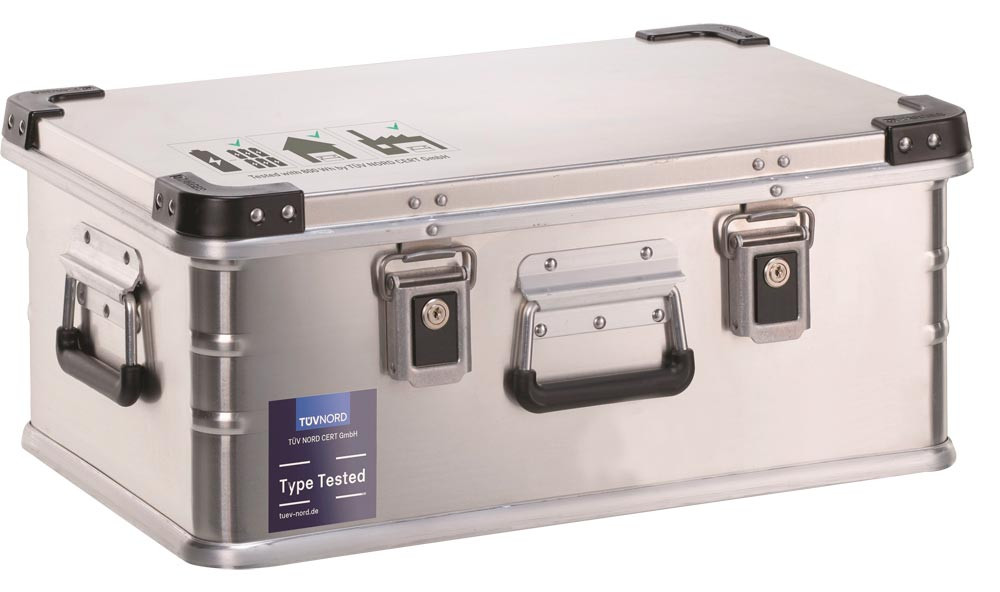 ∙ Hochwertiger Spezialbehälter aus Aluminium ∙ Zulassung für den Transport kritisch defekter Lithium Batterien mit Nennenergie bis 814 Wh, gemäß P911, SV 376 und Festlegung der BAM (Bitte entsprechend anfordern) ∙ Für die Aufbewahrung und den Transport von Prototypen (ADR P910), defekten oder beschädigten Lithium Batterien gemäß ADR SV 376 und Verpackungsvorschrift P908 ∙ Zwei Verschlüsse, je ein Griff an der Vorder- und Rückseite ∙ Mit feuerfestem Polster- und Aufsaugmaterial aus textuierten Glasfasern ∙ Staubfreie Innenausstattung ∙ Nach UN-Bestimmungen als Gefahrgutverpackung geprüft und zugelassen, d. h. vorschriftsgemäßer öffentlicher Transport möglich ∙ Brandtest erfolgreich bestanden: kein Übergreifen der Flammen auf die benachbarten Akkus ∙ Temperatur an der Behälteroberfläche bleibt unter 100 °C